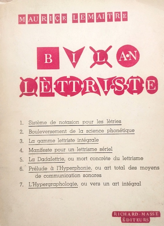 Lemaitre, Maurice, Bilan Lettriste, Paris, Richard Masse éditeurs, 1955.