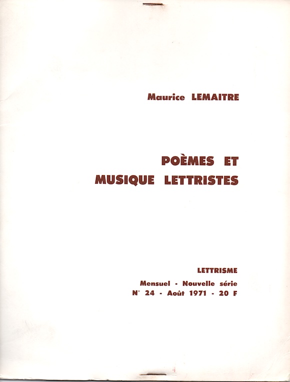 Lemaitre, Maurice, Oeuvres poétiques et musicales Lettristes, hypergraphiques, infinitésimales 1965, ex. num. 65 signé.