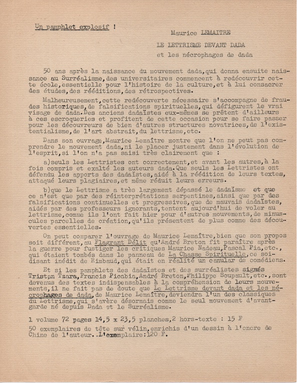 Lemaitre, Maurice, Un Pamphlet explosif !, L eLettrisme devant daad et les nécrophages de dada.