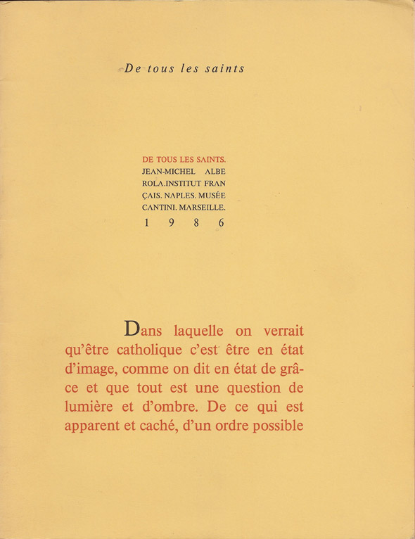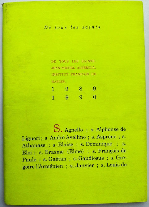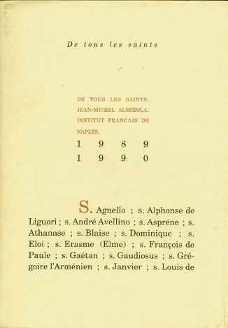 Jean-Michel Alberola, De tous les saints, Naples, Institut français, 1986.