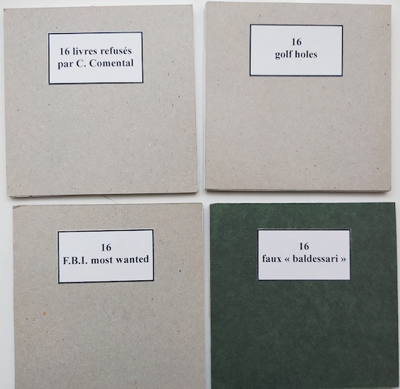 TABANOU, Michel, 16 livres refusés par C. Comùental, 16 golf holes, 16 FBI most wanted, 16 faux baldessari, l’auteur, 2007, signé.
