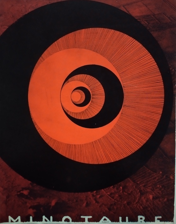 Minotaure 6, 1935, La couverture de ce numéro est spécialment composé par Marcel Duchamp. Textes de Mabille, Brassaï, Eluard, Vollard, Valery, Sannt-Exupery, Ramuz, Mallarmé, Fargues, Dali, Courthion, Breton, Heine, Prassinos, Jouve, Péret .Illustrations de Bill Brandt, Brassaï, Dali, Picasso, Tanguy, Klee, Kandinsky, Ernst, Cézanne, Bellmer (La Poupée), Seligmann, Duchamp