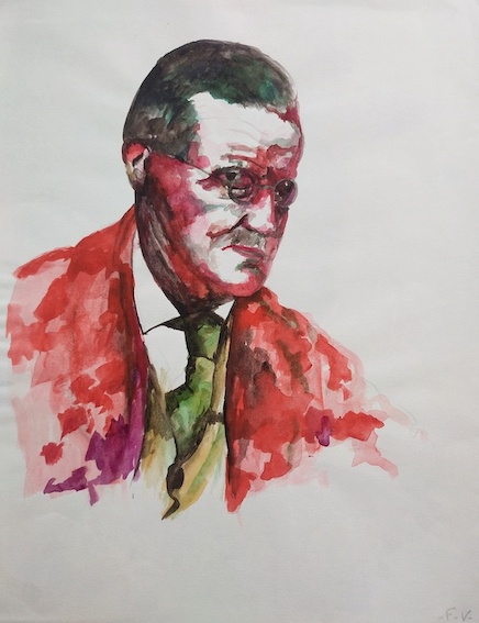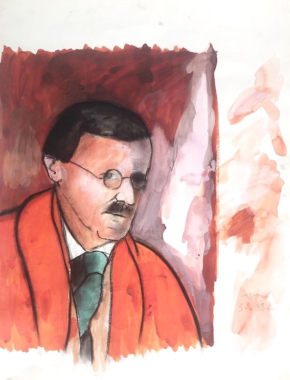 Frédéric Vincent, James Joyce, encre sur papier, 1996, signé, 24 x 31 cm.
