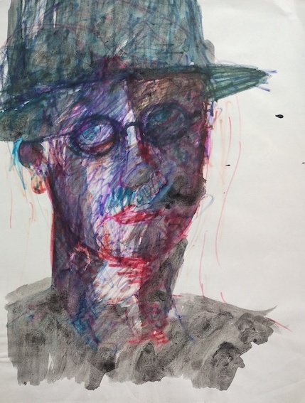 Frédéric Vincent, James Joyce, encre et fusain sur papier, 1997, 50 x 65 cm, signé.