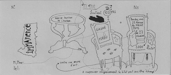 Jean-Michel Alberola, billet de tombola, Immanence, Paris, 2000,encre sur papier, 8 x 20,8 cm.