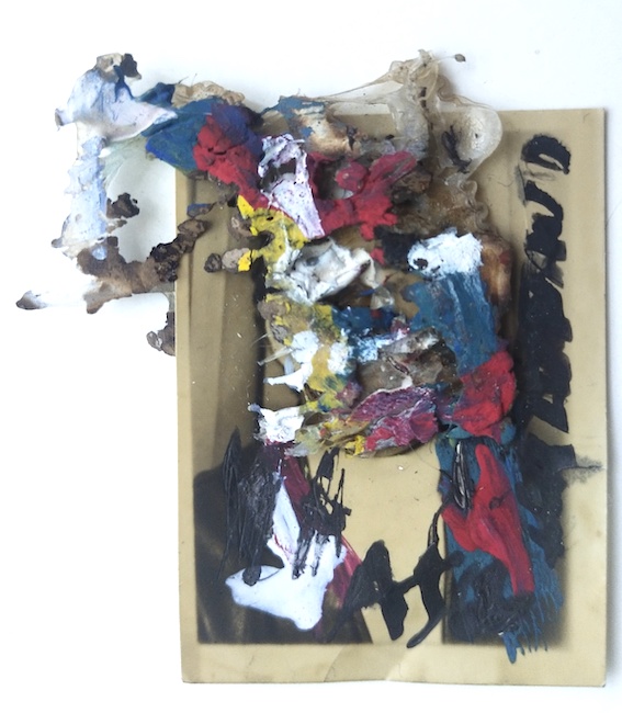 JORN, Asger, sans titre, intervention picturale sur photo d’identité, 6 x 5,5 cm.