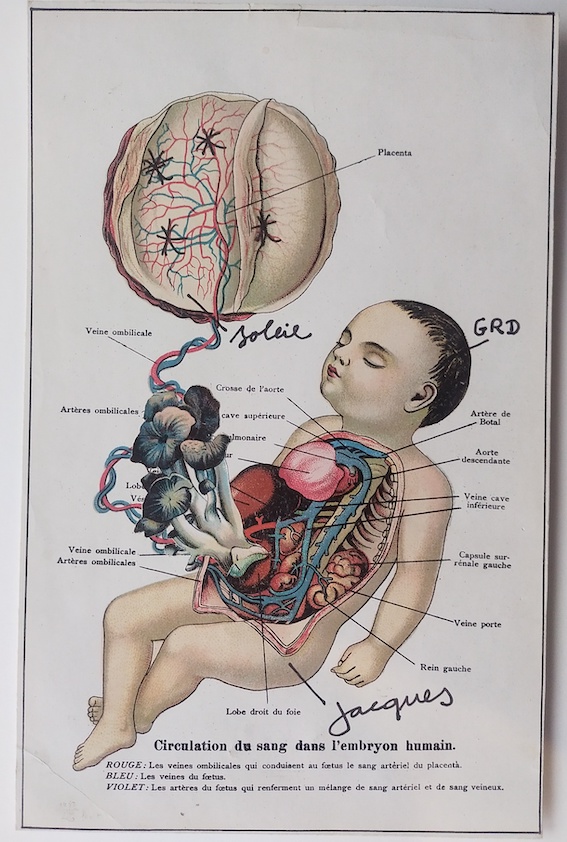 RIBEMONT-DESSAIGNES, Georges, PRÉVERT, Jacques, Soleil, collage sur papier, signé. 14 x 22 cm.