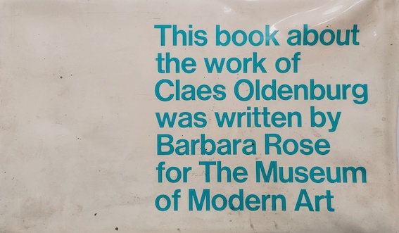 OLDENBURG, Claes, this book about the work of Claes Oldenburg was written by Barbara Rose for Museum of Modern Art, 1969.