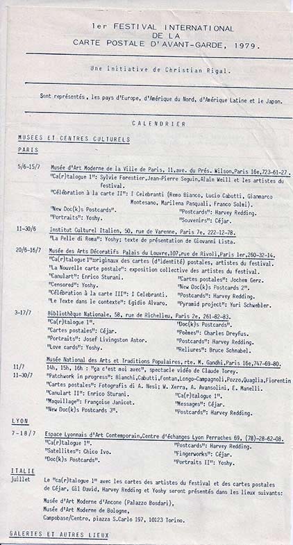 MAIL-ART, 1er festival International de la carte postale d’avant-garde, Paris, 1979.