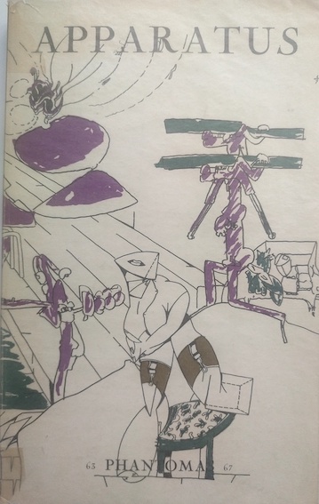 PHANTOMAS N° 63 / 67 : APPARATUS, Editions de la revue Phantomas, Bruxelles, 1966. Ce volume, publié en décembre 1966 et dirigé par Alain Jouffroy, compile les numéros 63 à 67. Ce numéro est consacré au thème de l’ identité et de ses apparences avec des textes de K. Axelos, W. Burroughs, A. Ginsberg, G. Corso, C. Pélieu, D. Roche, J.-L. Godard, Le Clézio, A. Du Bouchet, J. Gracq, J. Mansour, G. Luca, A. Artaud, M. Lowry, J.-P. Duprey, S. Rodanski, etc., et les illustrations en hors-texte, certaines à pleine ou double-page, de J. Monory, J. Dewasne, S. Rezvani, J.-P. Raynaud, F. Arnal, A. Artaud, V. Adami, etc. dont 2 en couleurs. Couverture composée par MATTA. 237 pages.