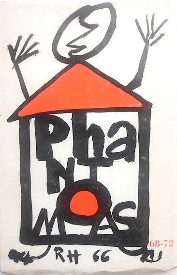COLLECTIF, PHANTOMAS N° 68 / 72, Editions de la revue Phantomas, Bruxelles, 1967. Avec des inédits de Raoul Hausmann suivis de témoignages, hommages et essais de Marcel Lecomte, Broodthaers, Noiret, Picqueray, Meuris, etc. accompagnés de quelques reproductions (des photographies en N & B hors-texte). Illustration de couverture d’après Hausmann.