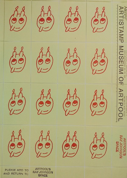 (d’après JOHNSON, Ray), GALANTAI, György, planche de timbres, Artpool, Budapest, 21 x 29,7 cm.
