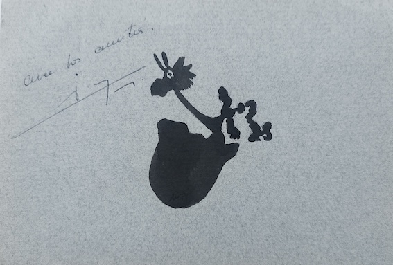 RIBEMONT-DESSAIGNES, Georges, carton d’invitation pour la représentation de la pièce Le serin-muet, Saint-Jeannet, 1980, signé.