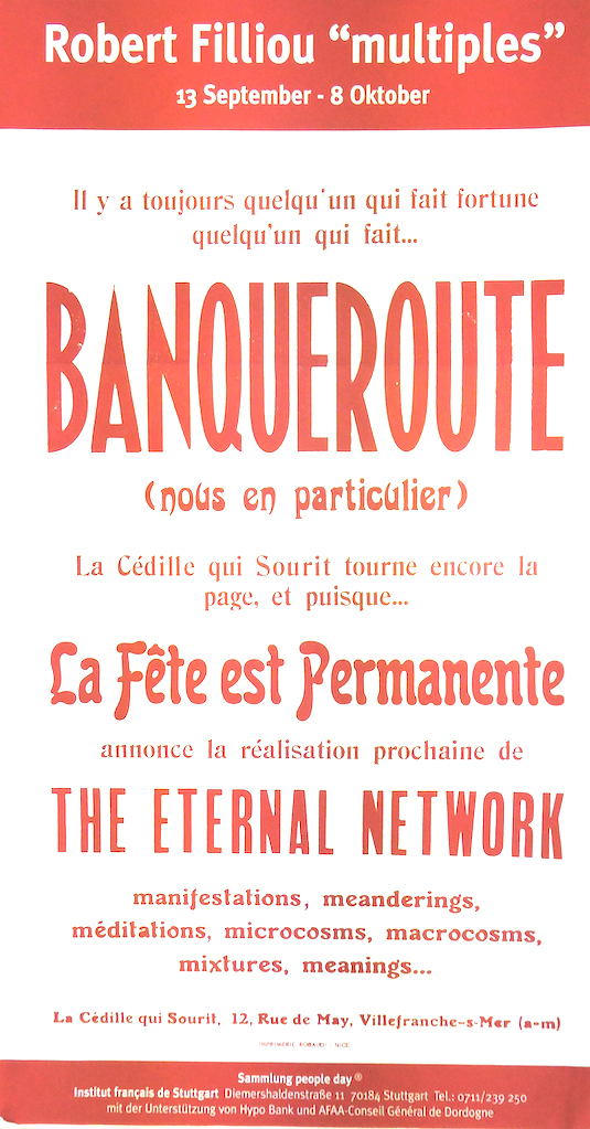 Robert Filliou, Affiche Banqueroute, Institut de Français de Stuttgart, Sammlung people Day, 34 x 60 cm.