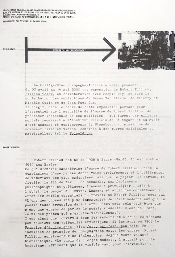 Robert Filliou, Affiche de l’exposition Frac Champagne-ardennes, 2001. inv. n°RF 104 07