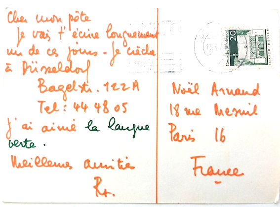 Robert Filliou, carte postale envoyée à Noël Arnaud. inv. n° RF054 07