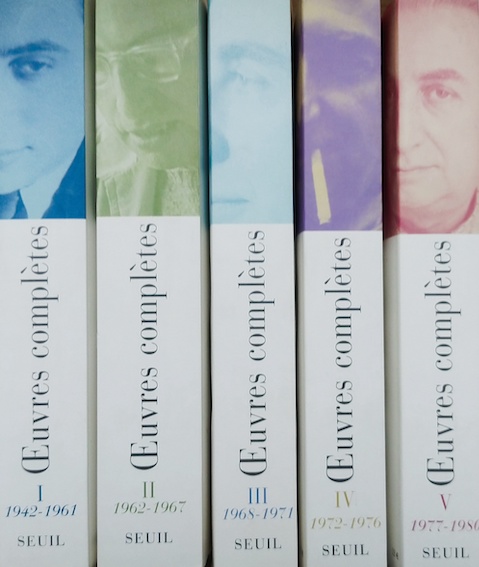 Roland Barthes, Œuvres complètes, Paris, Seuil, 5 volumes. Les volumes couvrent les périodes 1942-1961 (Tome I), 1962-1967 (Tome II), 1968-1971 (Tome III), 1972-1976 (Tome IV) et 1977-1980 (Tome V).
