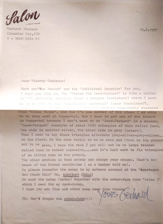 Salon, lettre de Gerhard Theewen à Thierry Chabanne, 15.07.1977, 21 x 29,7 cm.