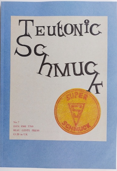 Revue SCHMUCK Teutonic N°7. Beau Geste Press, Surrey. 1975. Contributions de : Gabor Altorjay, Hansjürgen Bulkowski, Jörg Raummeter, Wolfgang Seelisch, Ludwig Gosewitz, Tom J. Grams, Klaus Groh, Helfried Hagenberg, Rolf Hannes, Birgit & Wilhem Hein, Dorothy Annone, Hans Werner Kalkman, Milan Kunz, Bernd Löbach-Hinweiser, Steffen Missmahl, Janos Nadasdy, Thomas Biggi, Claus Otto Paefgen, Günter Saree, Wolfgang Schmidt, Landfriede Schöpfer, Gerhard Trommer.