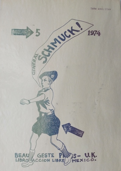 Revue GENERAL SCHMUCK N°5. Beau Geste Press, Surrey. 1974. Contributions de : Eric Andersen, Bruce Andrews, Yann Breakwell, Paul Burrell and Carlyle Reedy, Maonte Cazazza, ,Daniel Cazes, Allan Cowell, David Coxhead, Robin Crozier, Daniel Culla, John Danvers, Andy Darlington, Gary gach, Charlie Garrad, Mick Gibbs, Tony Gnazzo, Ted Goff, Paul Gogarty, Marten Hendricks, Ken Hickman, Dick Higgins, Avron K. Hoffman, Ida Horowitz, Roger Jeffs, Bernard Kelly, Tim Jones, General Idea, Richard Kostelanetz, Takehisa Kosugi, Jaroslaw Kozlowski, Ruth Krauss, Bill Lundberg, Barry McCallion, Don Mabie, Tim Mancuso, Raul Marroquin, Young Tchang, Joan Mathews, Jack Reynolds, Victore Musgrave, Opal L. Nations.