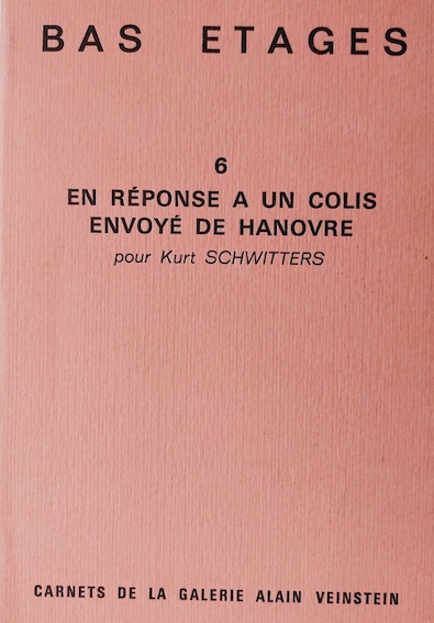 SCHWITTERS, Kurt en réponse à un colis envoyé de Hanovre, bas étages N°6, carnet de la galerie Alain Veinstein, 1993.