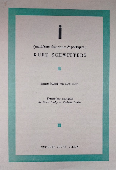 SCHWITTERS, Kurt, I, manifestes, théoriques & poétiques, editions ivres, 1994.