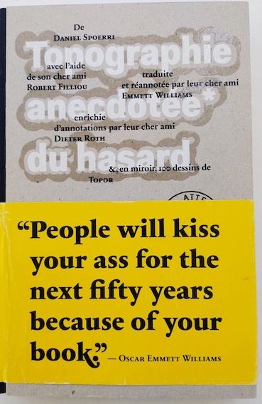 Spoerri, Daniel, an anecdote topography of chance, New York, Something Else Press, 1966. envoi de Spoerri à Roland Topor.