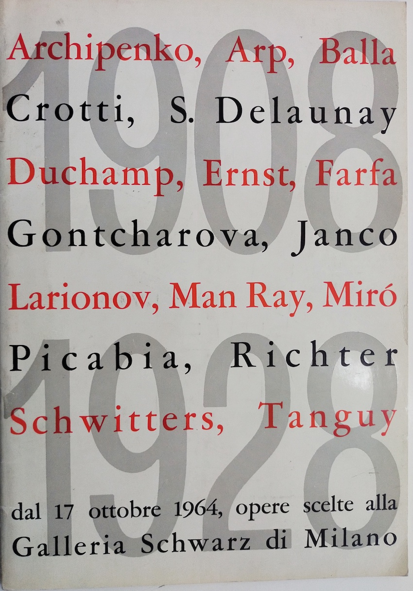 Dada, Surréalisme, Catalogue Milan Arturo Schwarz, 1964.,Archipenko, App, Balla, Crotti, S. Delaunay, Duchamp, Ernst, farda, Gontcharova, Janco, Larionaov, Man Ray, Miro, Picabia, Richter, Schwitters, Tanguy.