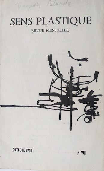 TINGUELY, Jean, Méta-Matic N°17 in revue Sens Plastique N°VIII, octobre 1959. Feutre et tampon sur papier, 23,1 x 13,2 cm, 1959.