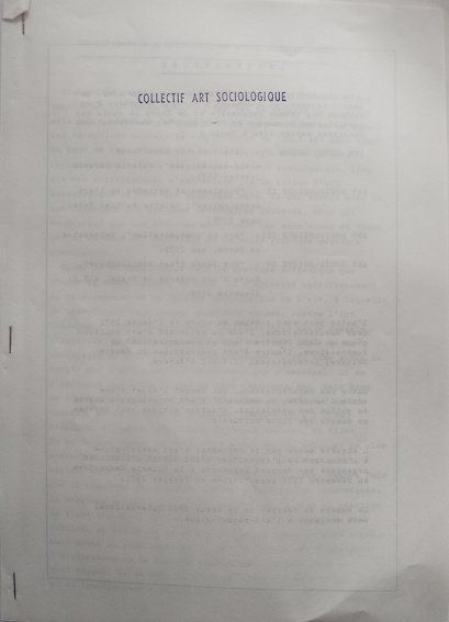 Art Sociologique, Collectif Art Sociologique, 16 pages imp. sur papier blanc agrafées, Paris, 1974. Hervé Fischer, Fred Forest, Jean-Paul Thenot.