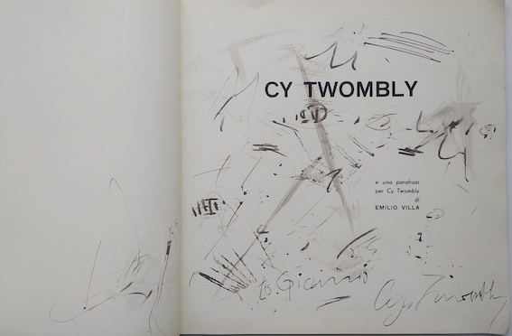 TWOMBLY, Cy, grande dédicace et dessin in Emilio Villa, 1961, ex. num. 140. ex.